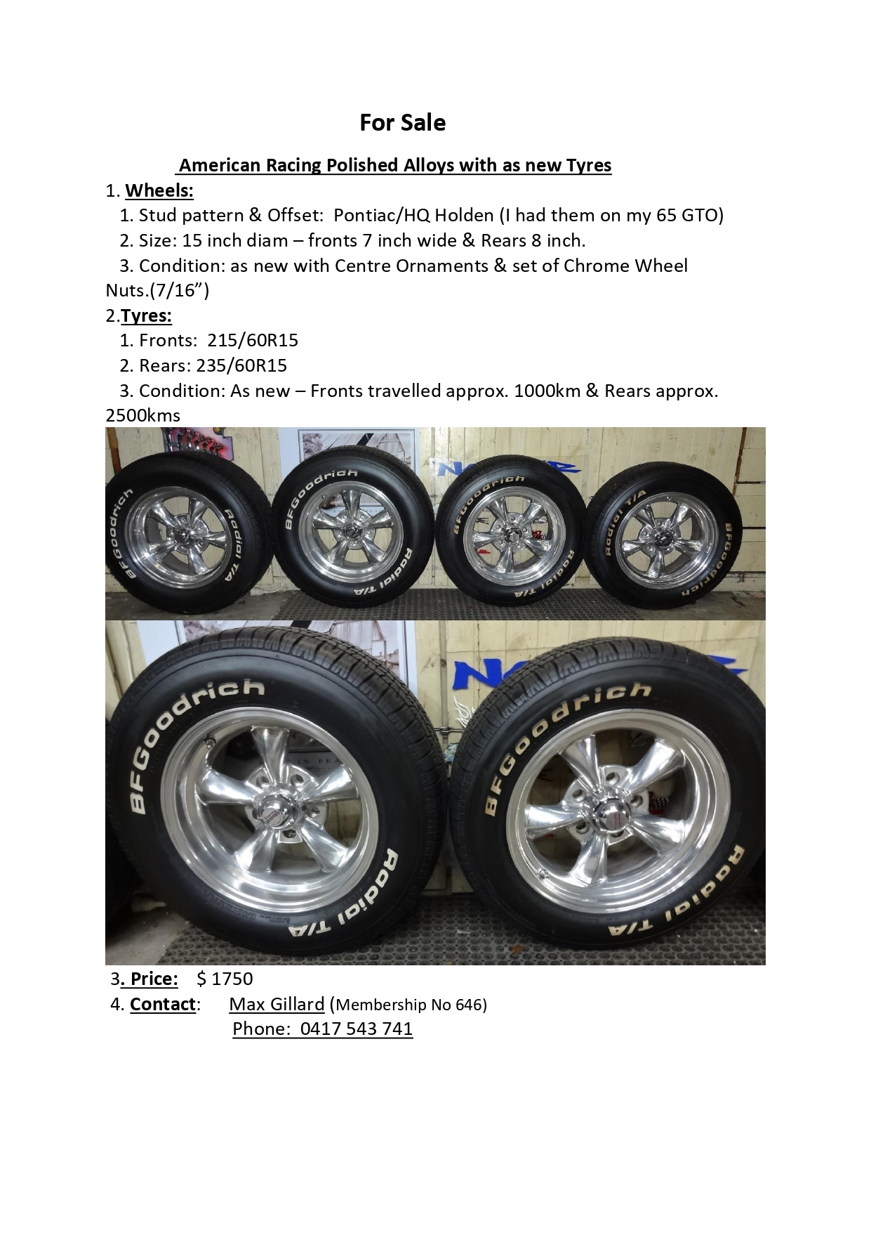 Items for Sale by Club Members. Please contact the seller directly and not the Club.